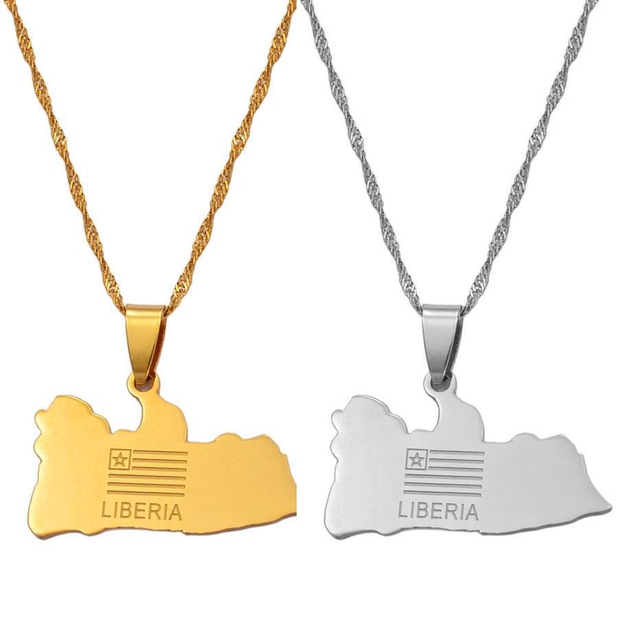 Liberia Flag Map Necklace. Show your pride, support your country & wear your pendant with passion. Buy now!