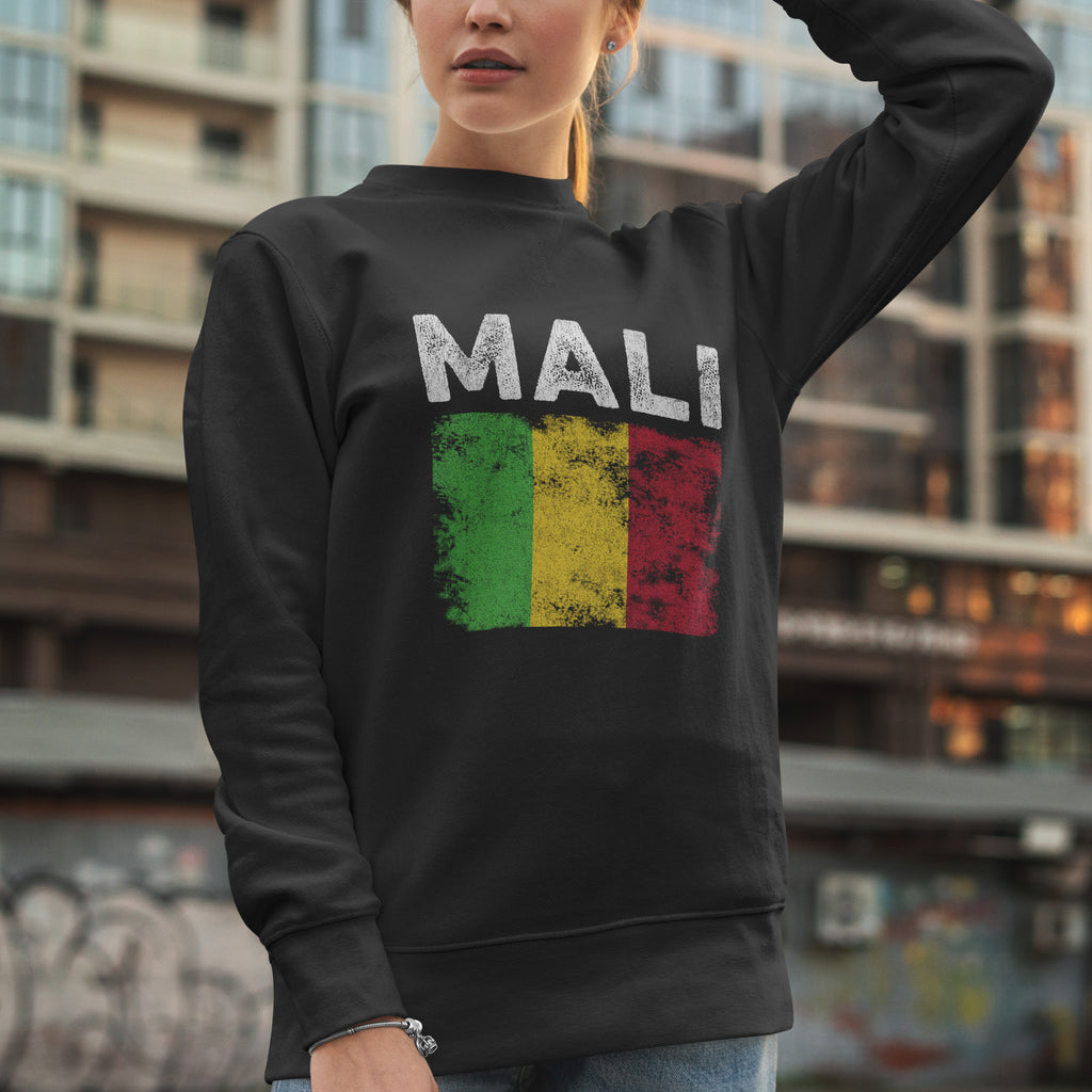 Mali Flag Distressed - Malian Flag Sweatshirt