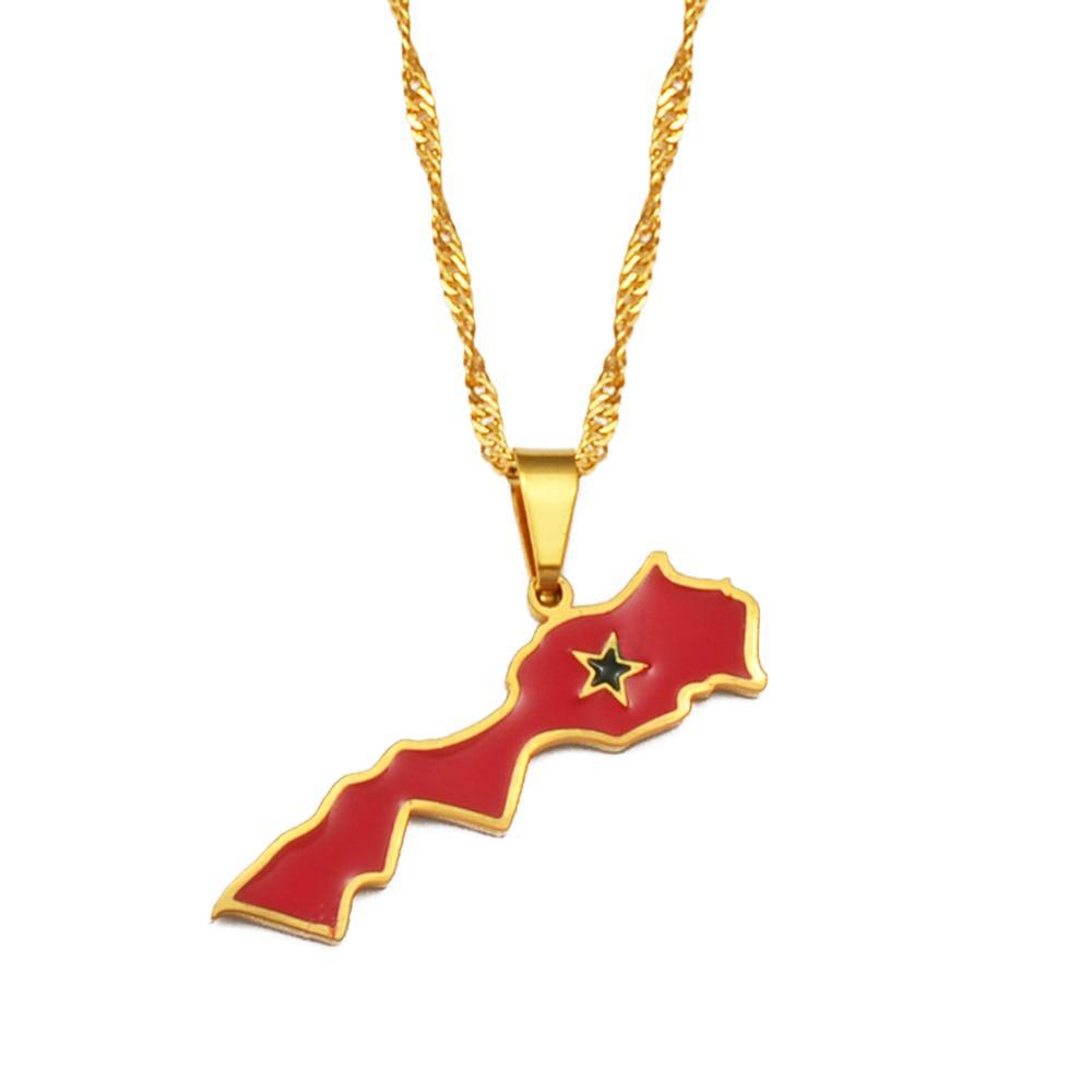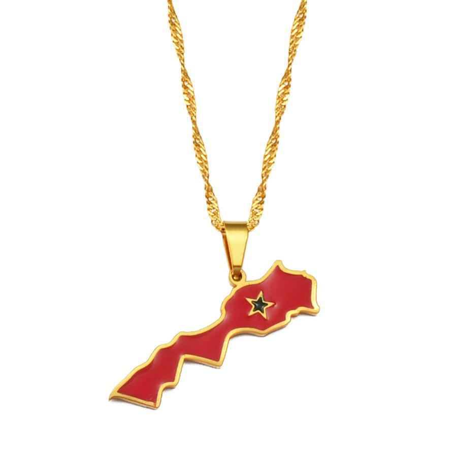 Morocco Flag Map Necklace. Show your pride, support your country & wear your pendant with passion. Buy now!