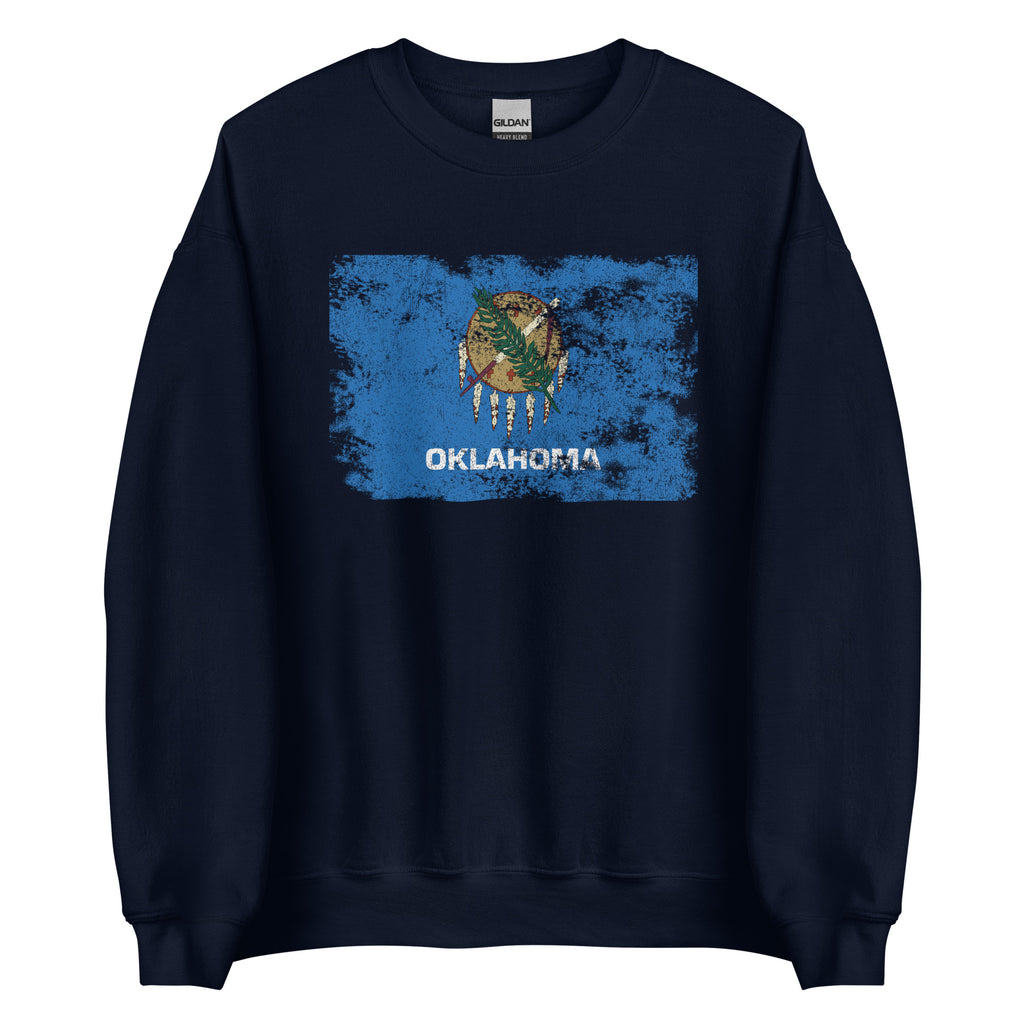 Celebrate your heritage with our Distressed Oklahoma State Flag Sweatshirt. Show your pride, support your country & wear your colors with passion. Buy now!