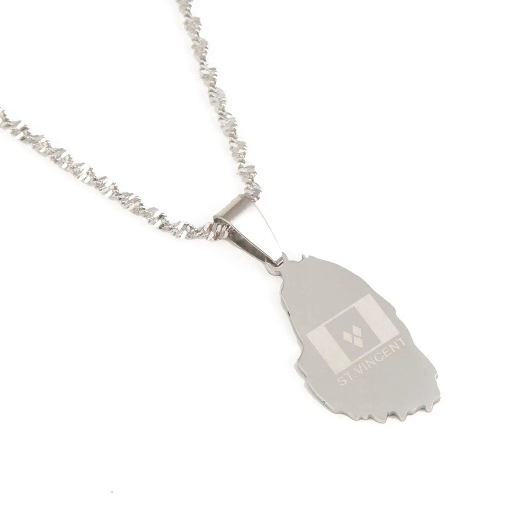with our Saint Vincent Flag Map Necklace. Show your pride, support your country & wear your pendant with passion. Buy now!