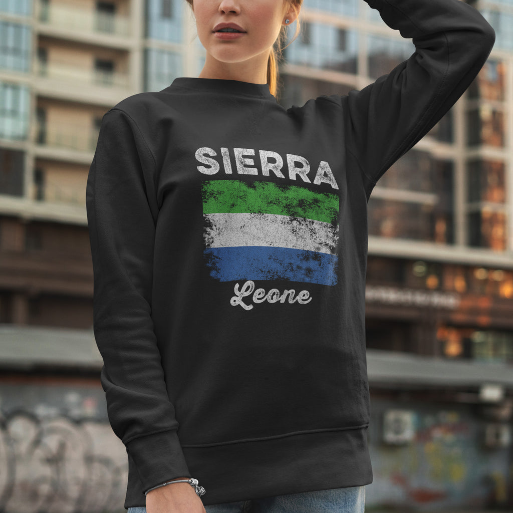 Celebrate your heritage with our Distressed Sierra Leone Flag Sweatshirt. Show your pride, support your country & wear your colors with passion. Buy now!