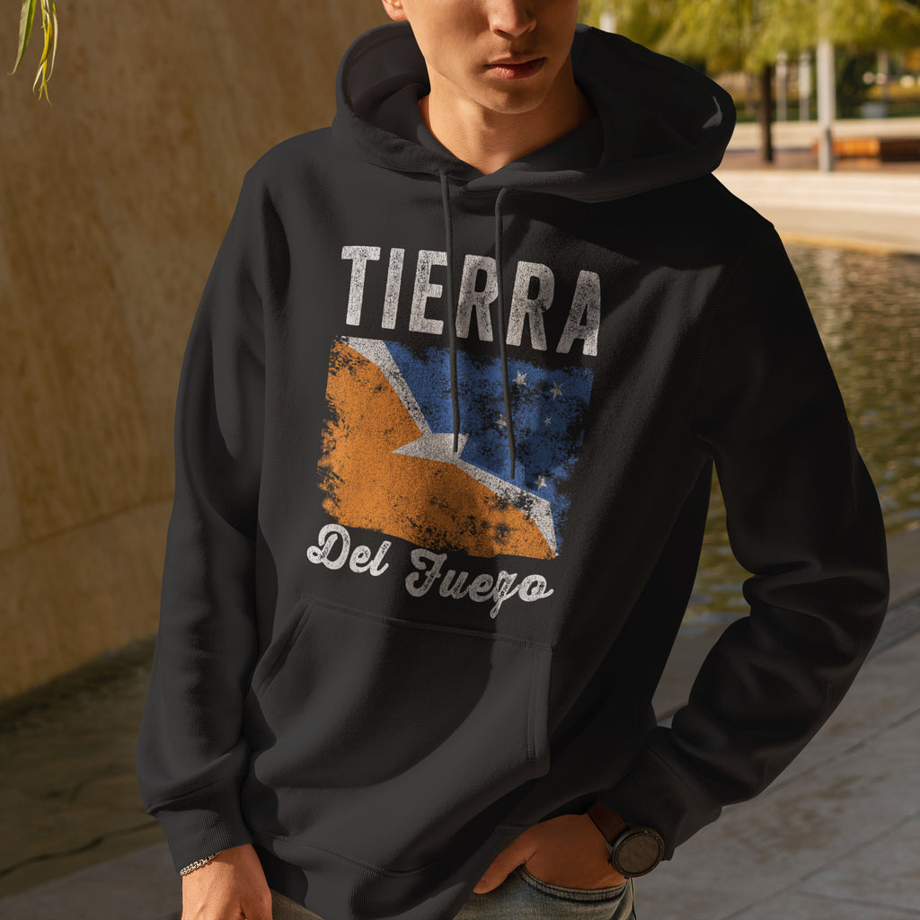 Celebrate your heritage with our Distressed Tierra Del Fuego Flag Hoodie. Show your pride, support your country & wear your colors with passion. Buy now!