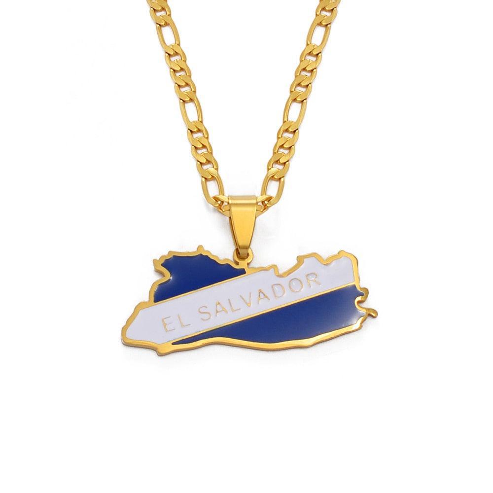 Celebrate your heritage with our El Salvador Flag Map Necklace. Show your pride, support your country & wear your pendant with passion. Buy now!