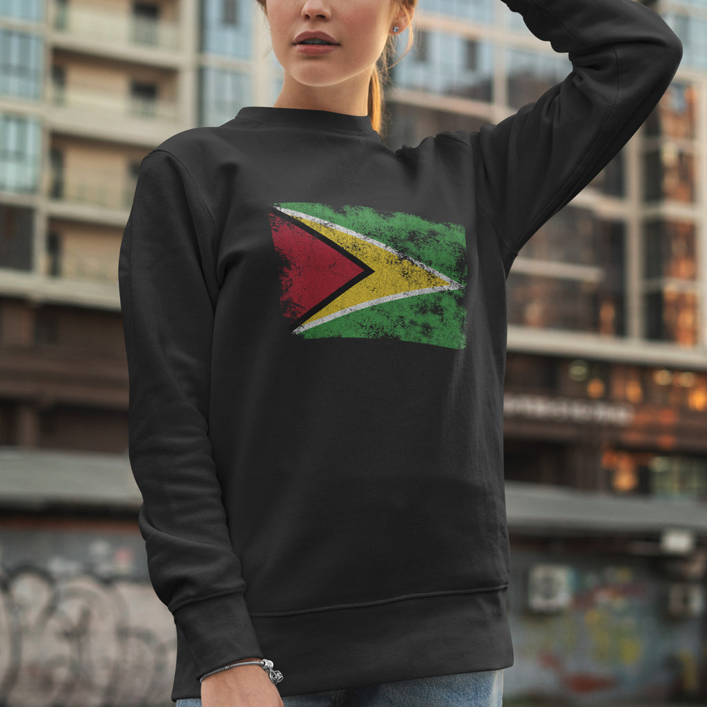 Celebrate your heritage with our Distressed Guyana Flag Sweatshirt. Show your pride, support your country & wear your colors with passion. Buy now!