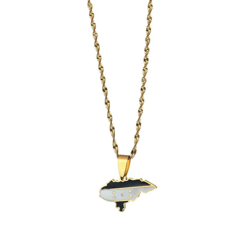 Elevate your heritage with our Honduras Flag Map Necklace. Show your pride, support your country & wear your pendant with passion. Buy now!