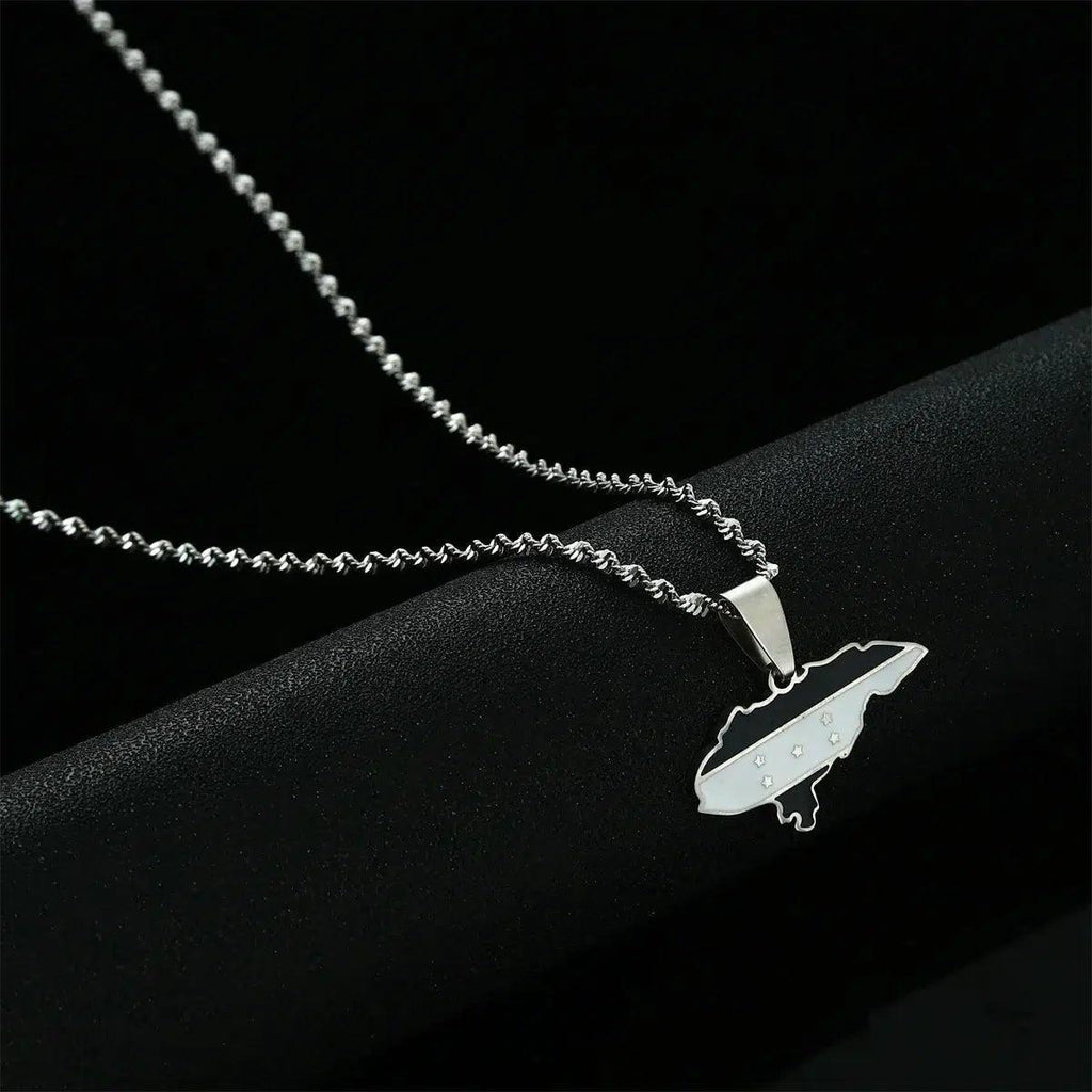 Celebrate your heritage with our Honduras Flag Map Necklace. Show your pride, support your country & wear your pendant with passion. Buy now!