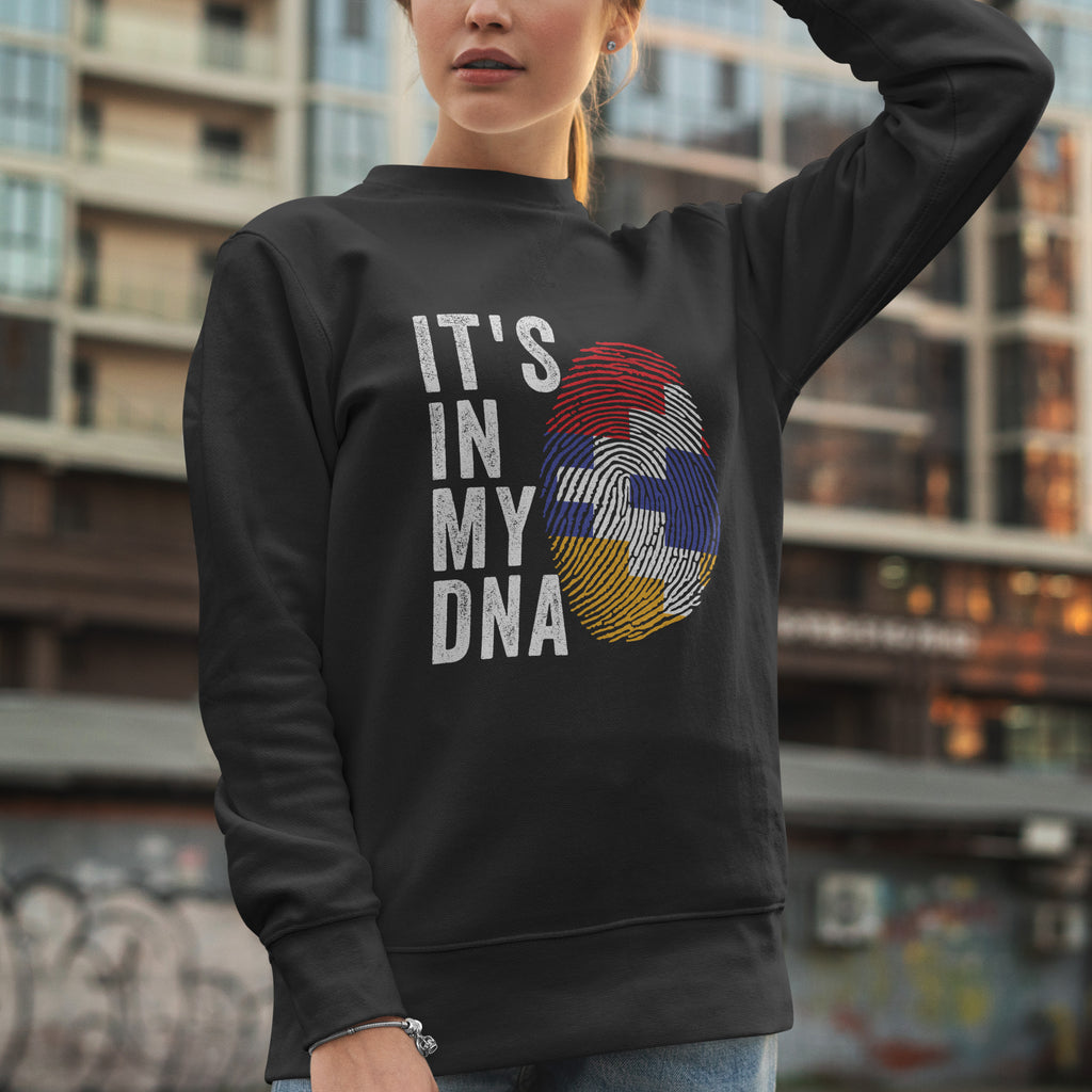 Celebrate your heritage with our It's In My DNA Artsakh Flag Sweatshirt. Show your pride, support your country & wear your colors with passion. Buy now!