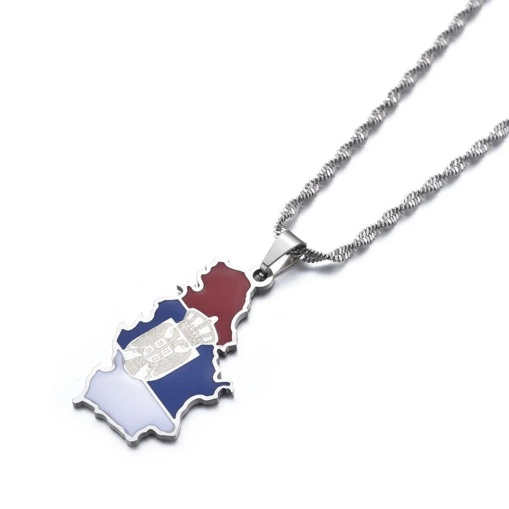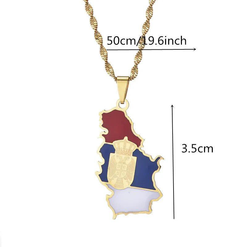 Elevate your heritage with our Serbia Flag Map Necklace. Show your pride, support your country & wear your pendant with passion. Buy now!