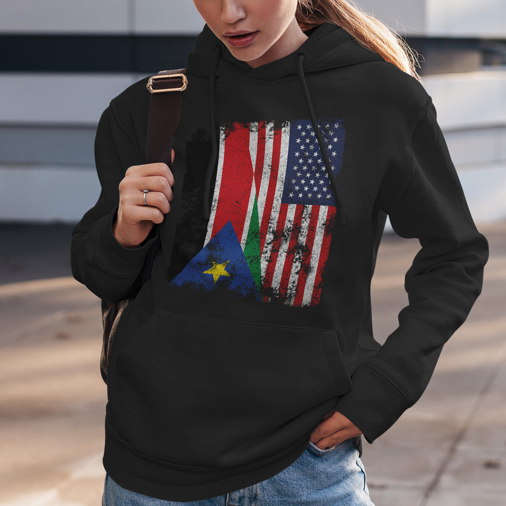 Celebrate your heritage with our Distressed South Sudan 2011-2023 USA Flag Hoodie. Show your pride, support your country & wear your colors with passion. Buy now!