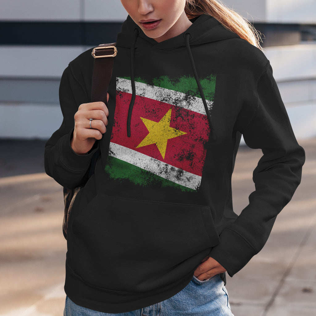 Celebrate your heritage with our Distressed Suriname Flag Hoodie. Show your pride, support your country & wear your colors with passion. Buy now!