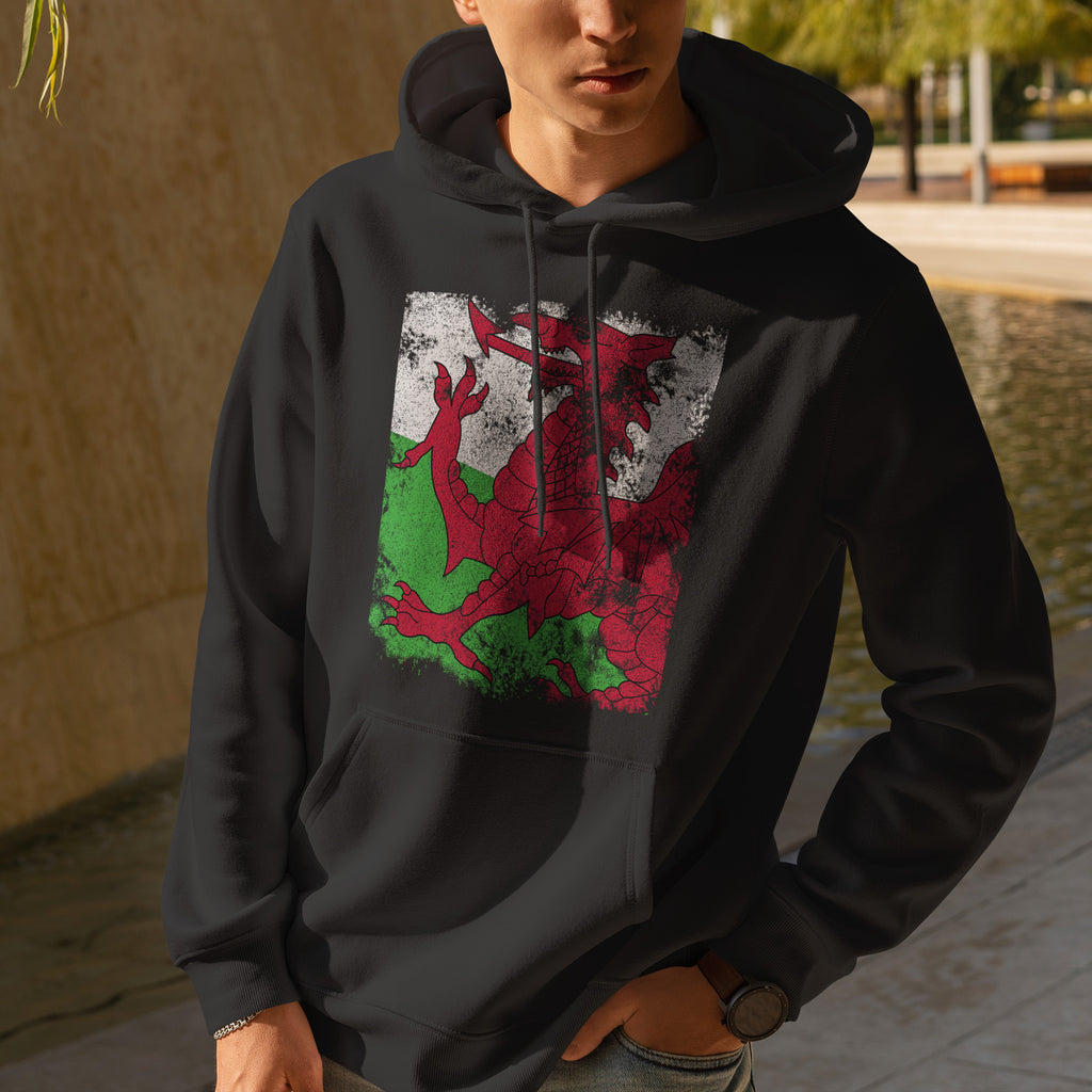 Celebrate your heritage with our Distressed Wales Flag Hoodie. Show your pride, support your country & wear your colors with passion. Buy now!