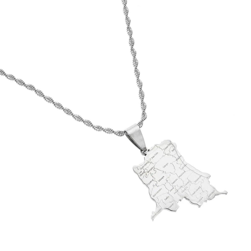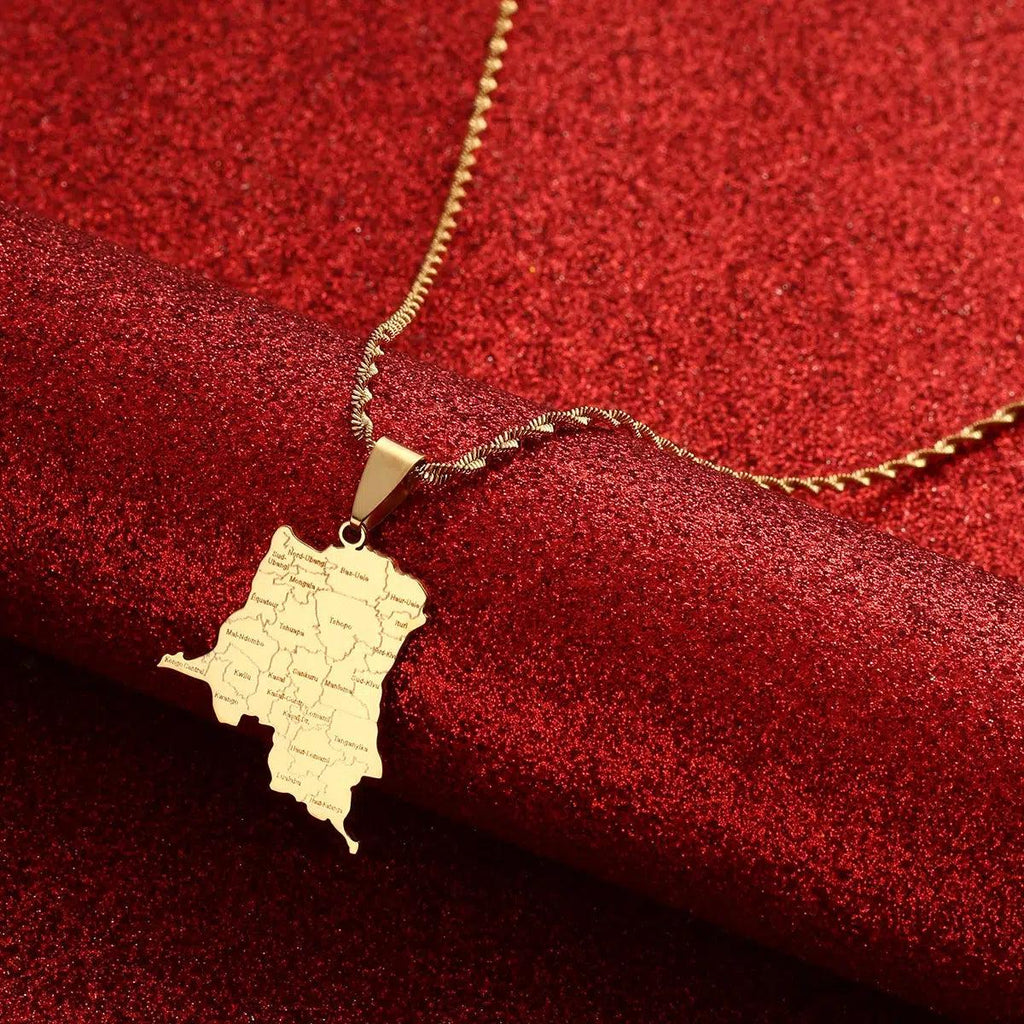 Celebra tu herencia con nuestro Collar con Mapa de la República Democrática del Congo. Muestra tu orgullo, apoya a tu país y lleva tu colgante con pasión. ¡Compra ahora!