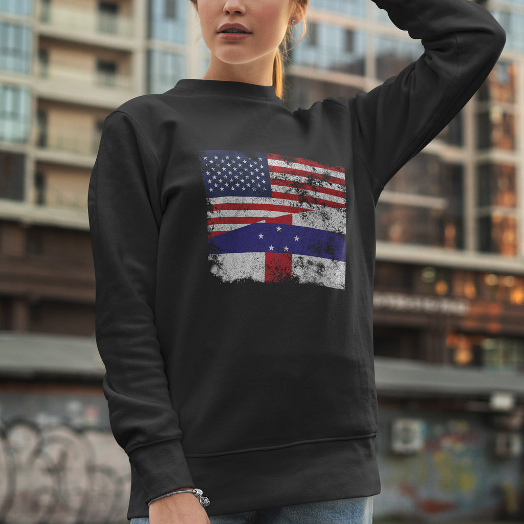 Celebra tu herencia con nuestra Sudadera con la bandera desgastada de las Antillas Neerlandesas de EE. UU. Muestra tu orgullo, apoya a tu país y lleva tus colores con pasión. ¡Compra ahora!