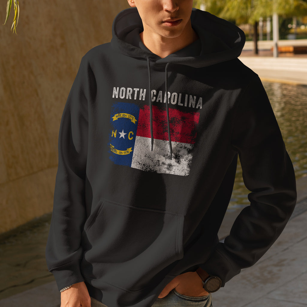 Celebra tu herencia con nuestra sudadera con capucha de la bandera del estado de Carolina del Norte desgastada. Muestra tu orgullo, apoya a los Estados Unidos y lleva tus colores con pasión. ¡Compra ahora!