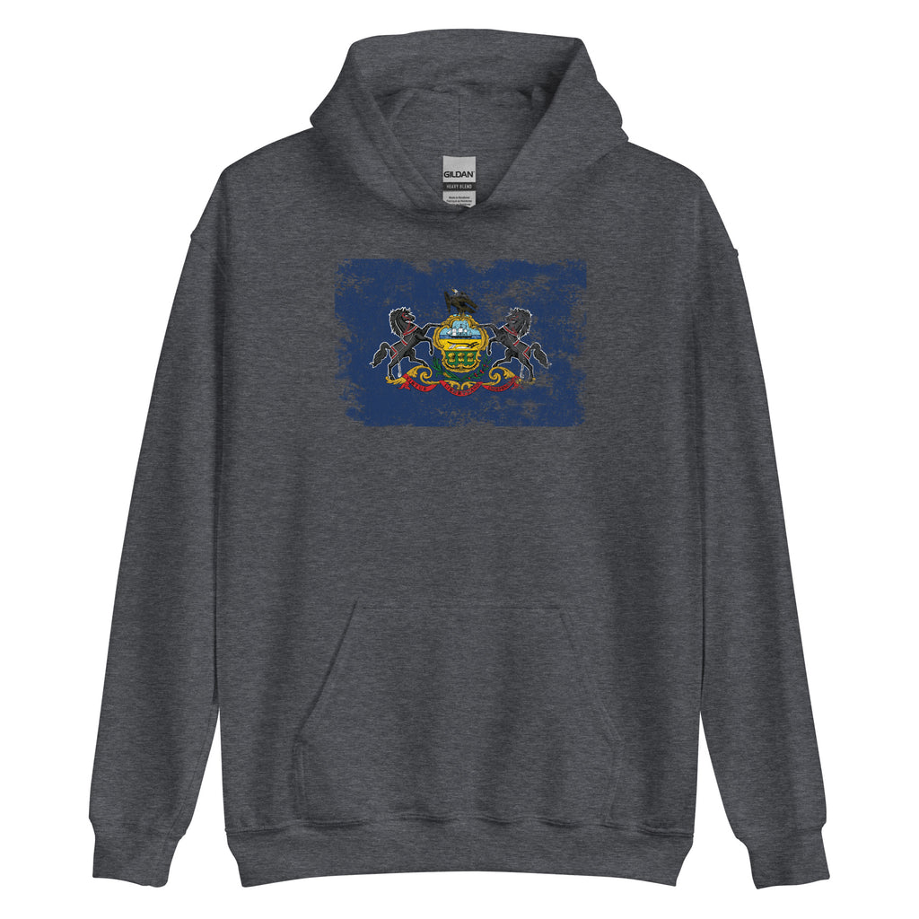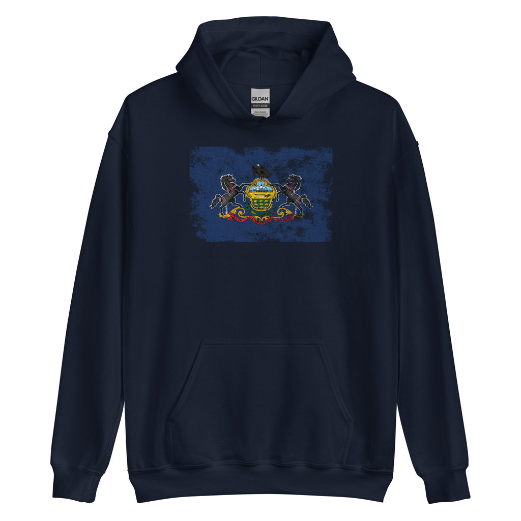 Celebra tu herencia con nuestra Sudadera con Capucha de la Bandera del Estado de Pennsylvania Desgastada. Muestra tu orgullo, apoya a los Estados Unidos y lleva tus colores con pasión. ¡Compra ahora!