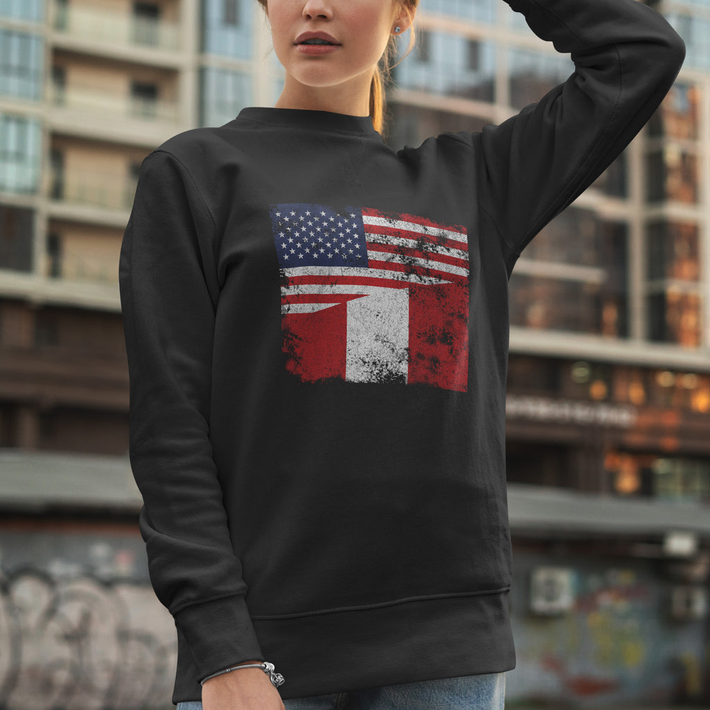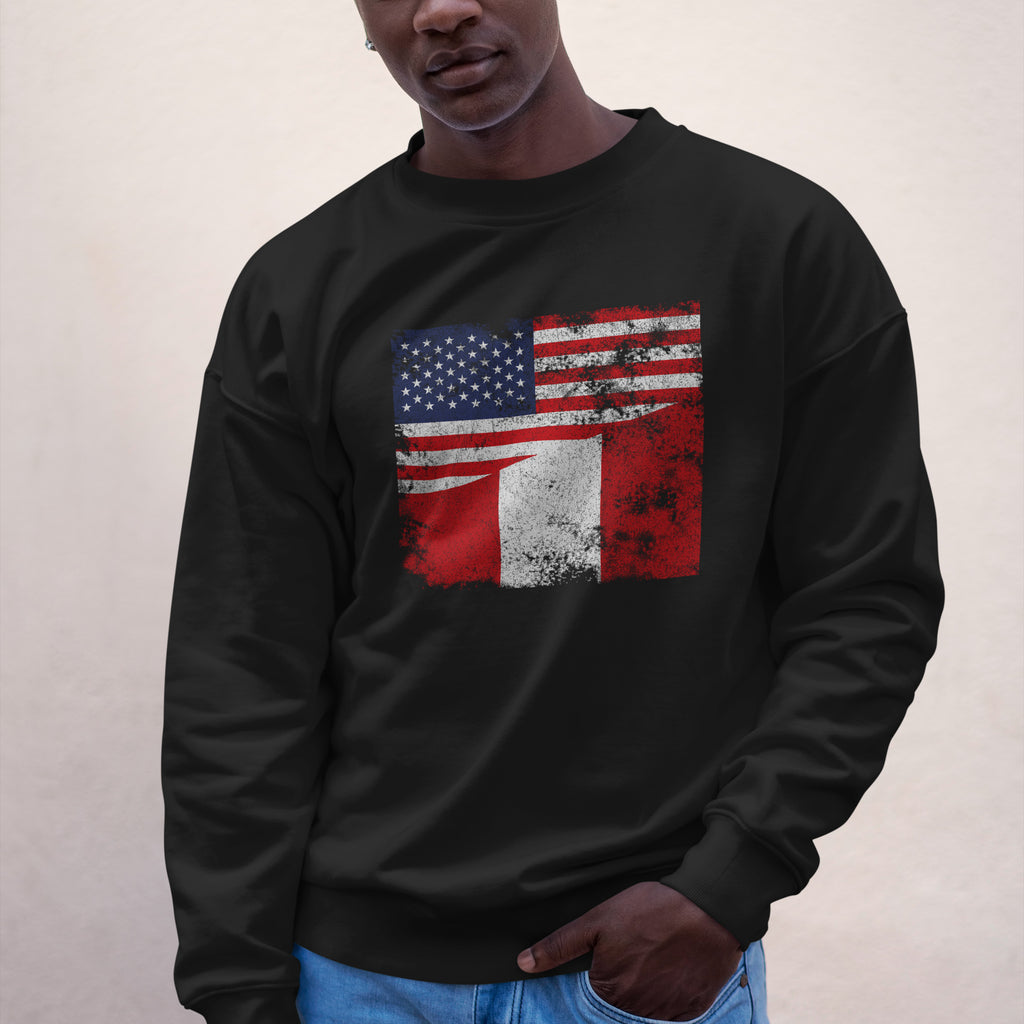 Celebra tu herencia con nuestra Sudadera con la bandera desgastada de Perú y EE. UU. Muestra tu orgullo, apoya a tu país y lleva tus colores con pasión. ¡Compra ahora!