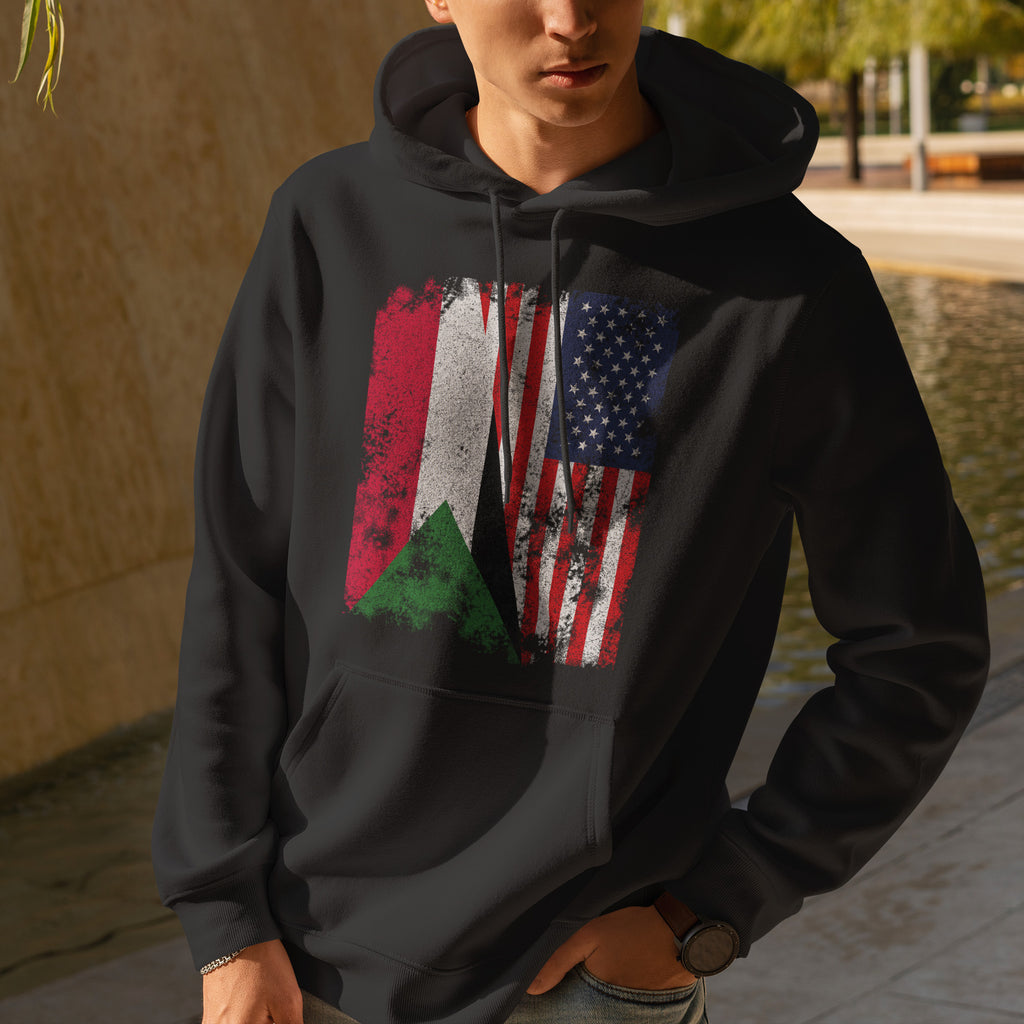 Celebra tu herencia con nuestra Sudadera con Capucha de la Bandera de Sudán USA Desgastada. Muestra tu orgullo, apoya a tu país y lleva tus colores con pasión. ¡Compra ahora!