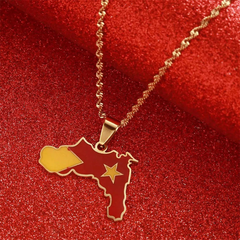 Eleva tu herencia con nuestro Collar con Mapa de la Bandera de Tigray. Muestra tu orgullo, apoya a tu país y lleva tu colgante con pasión. ¡Compra ahora!