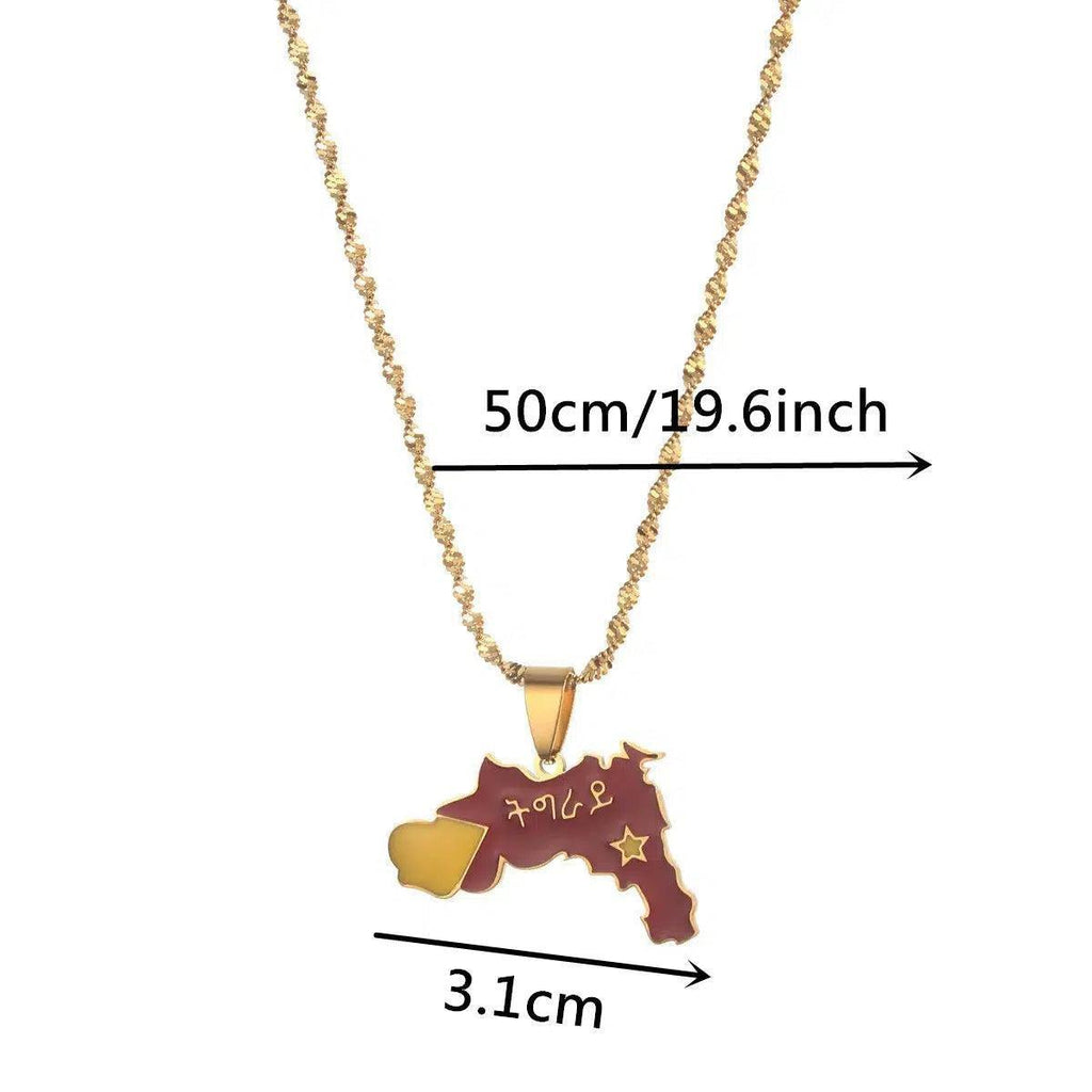 Eleva tu herencia con nuestro Collar con Mapa de la Bandera de Tigray. Muestra tu orgullo, apoya a tu país y lleva tu colgante con pasión. ¡Compra ahora!