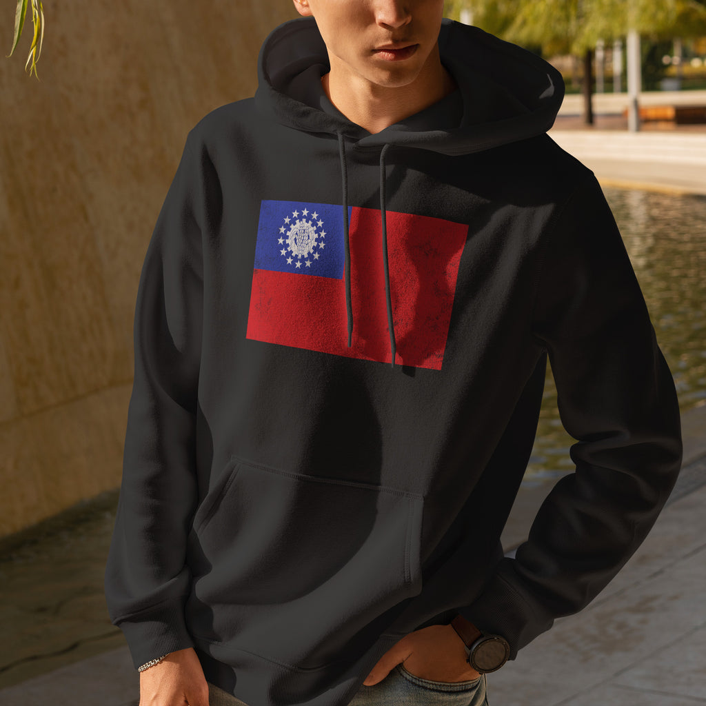 Ipagdiwang ang iyong pamana gamit ang aming Distressed Burma Flag Hoodie. Ipakita ang iyong pagmamalaki, suportahan ang iyong bansa, at isuot ang iyong mga kulay nang may pagmamahal. Bumili na ngayon!