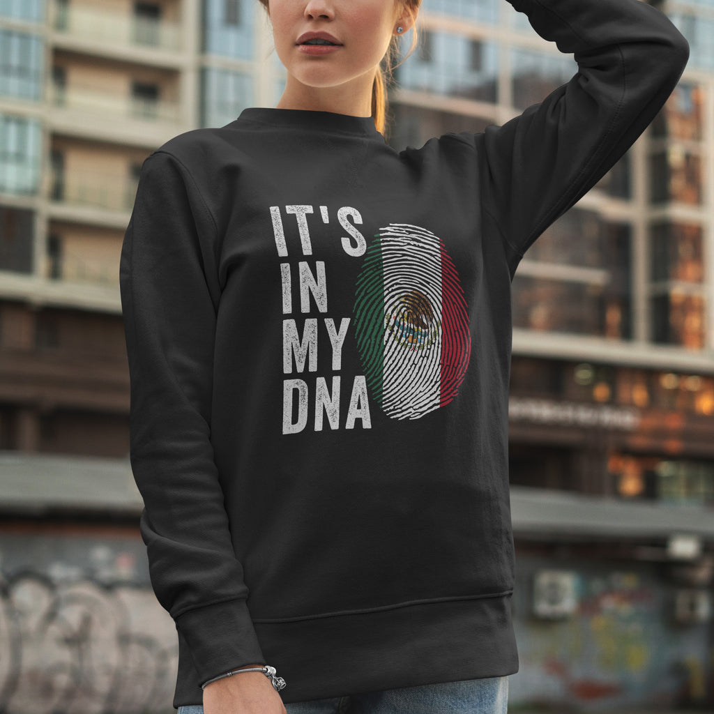 Ipinagdiriwang ang iyong pinagmulan gamit ang aming It's In My DNA Mexico Flag Sweatshirt. Ipakita ang iyong pagmamalaki, suportahan ang iyong bansa & isuot ang iyong mga kulay nang may pagmamahal. Bumili na!