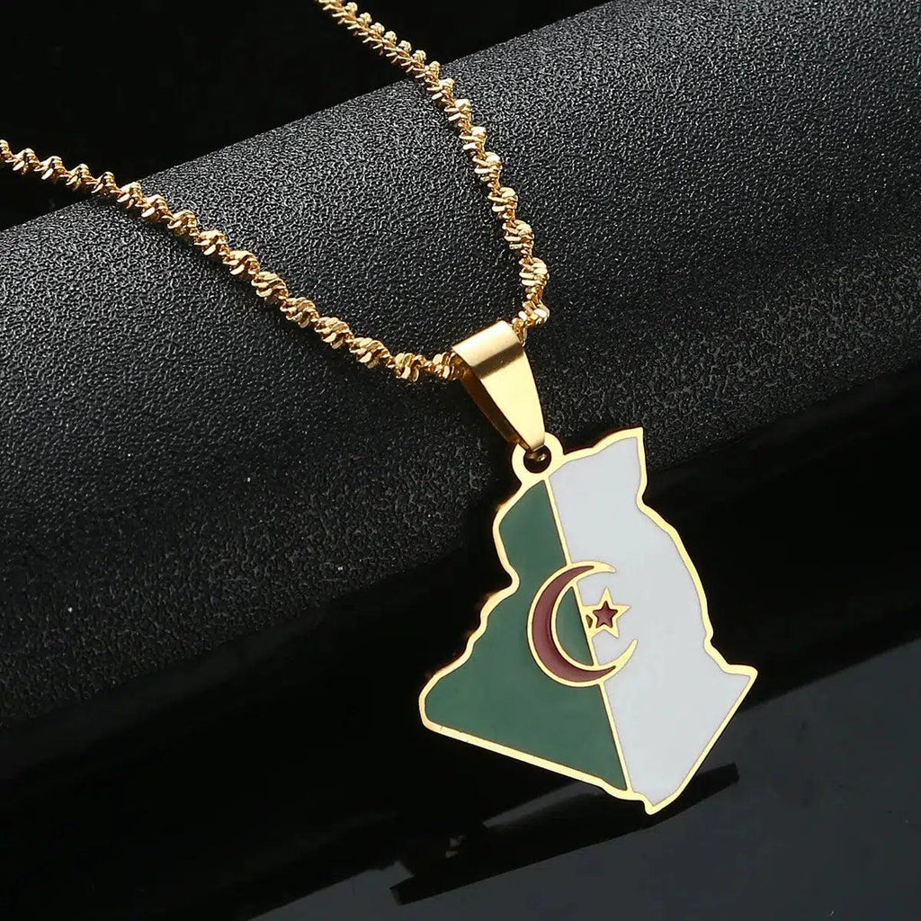 Sublimez votre héritage avec notre Collier Carte du Drapeau de l'Algérie. Montrez votre fierté, soutenez votre pays et portez votre pendentif avec passion. Achetez maintenant !