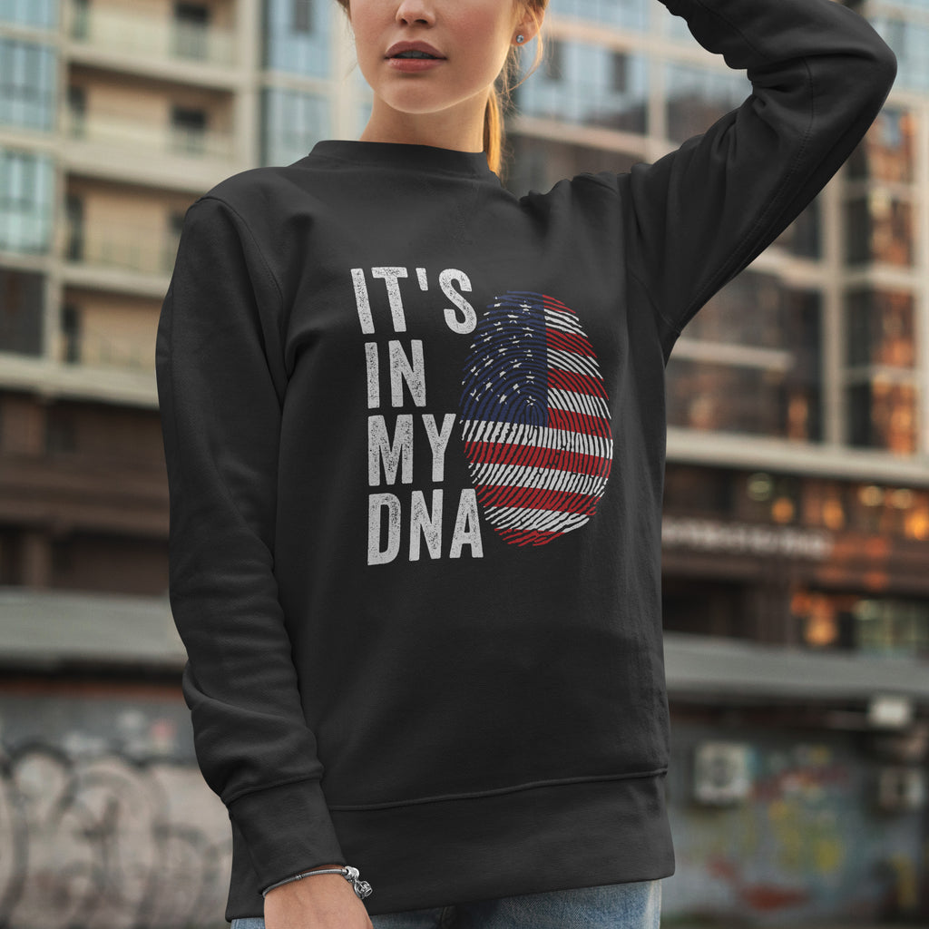 Rayakan warisan Anda dengan Sweatshirt Bendera Amerika Serikat It's In My DNA kami. Tunjukkan kebanggaan Anda, dukung negara Anda & kenakan warna Anda dengan penuh semangat. Beli sekarang!