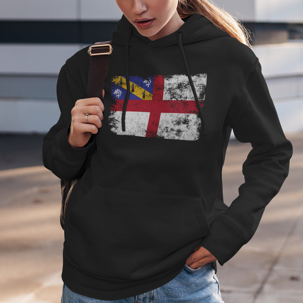 Celebra la tua eredità con la nostra Felpa con Cappuccio Distressed Herm Flag. Mostra il tuo orgoglio, supporta il tuo paese e indossa i tuoi colori con passione. Acquista ora!