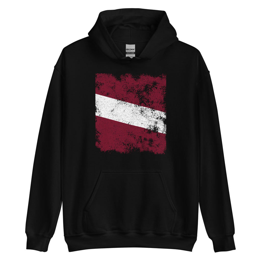 ディストレストラトビア国旗フーディであなたのルーツを祝福しましょう。誇りを示し、国を応援し、情熱を持ってあなたの色を着こなしてください。