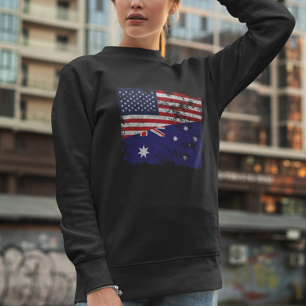 Świętuj swoje dziedzictwo z naszą bluzą z nadrukiem postarzaną flagą Australii i USA. Pokaż swoją dumę, wspieraj swój kraj i noś swoje barwy z pasją. Kup teraz!
