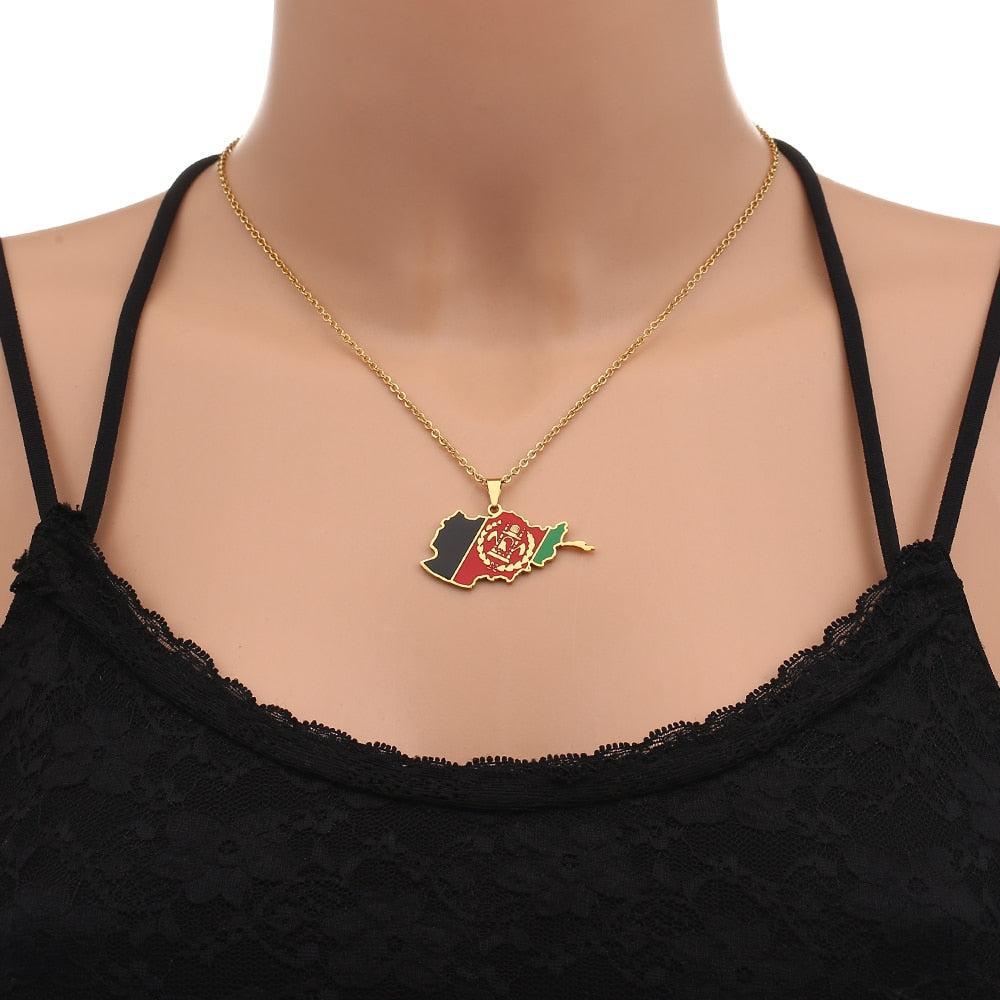Afghanistan Flag Map Necklace