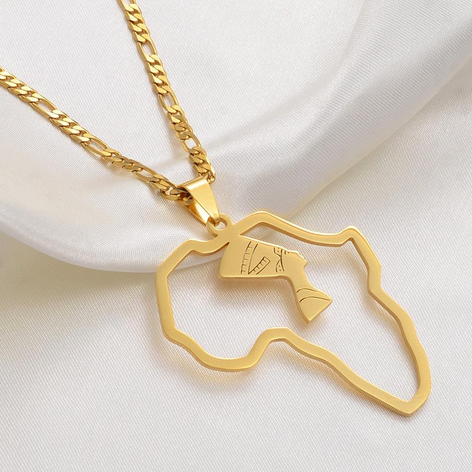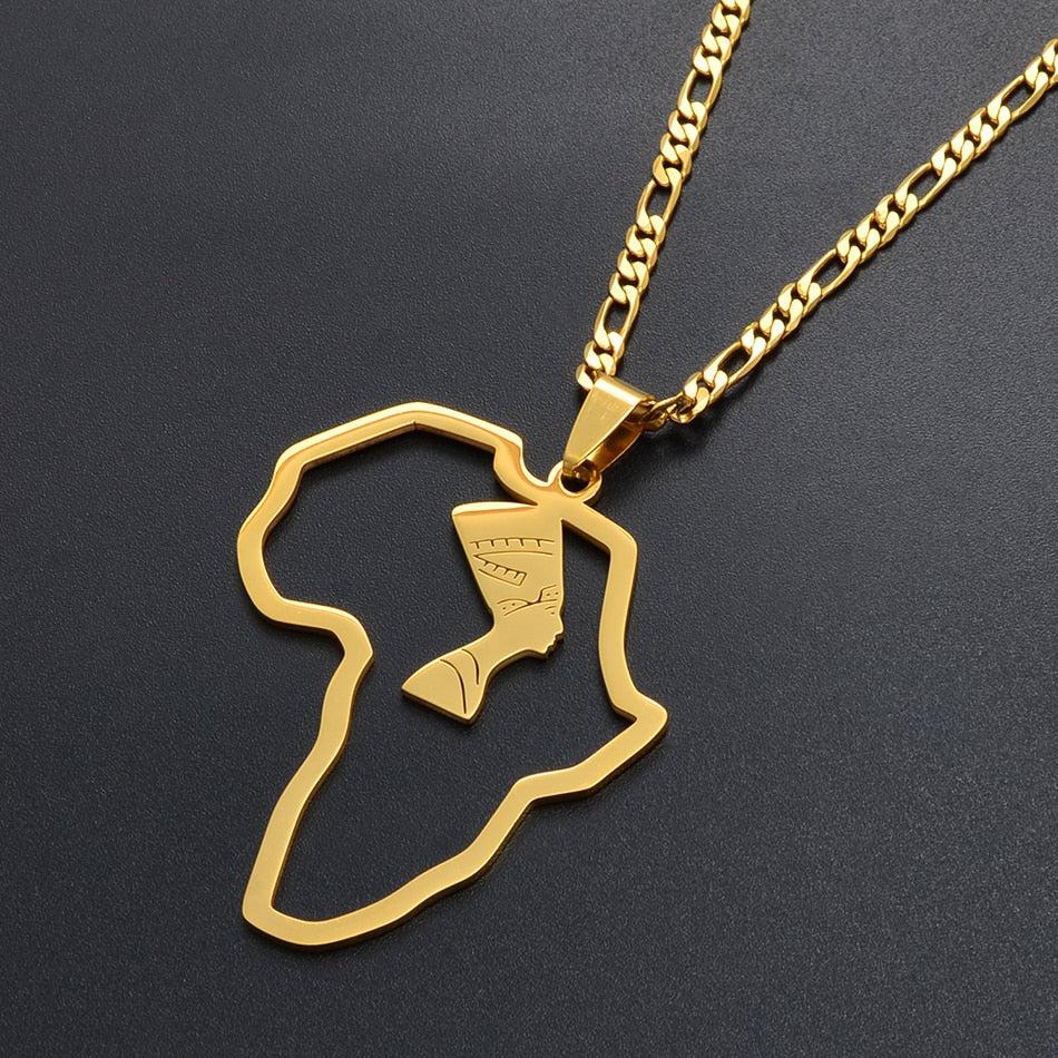 Celebrate your heritage with our Africa Queen Nefertiti Map Necklace. Show your pride, support your country & wear your pendant with passion. Buy now!