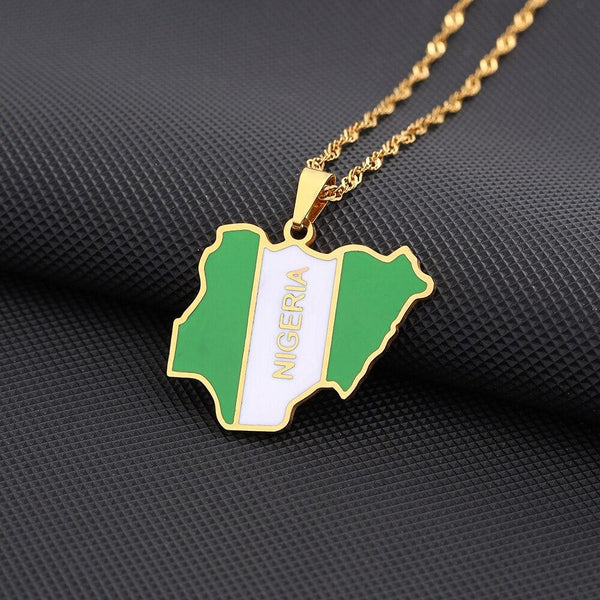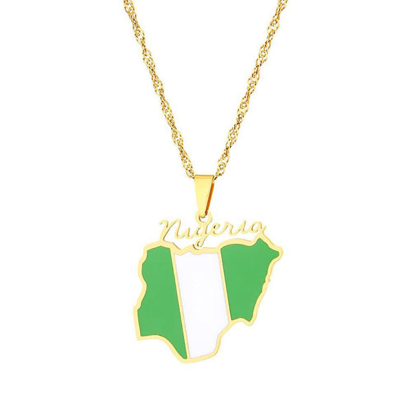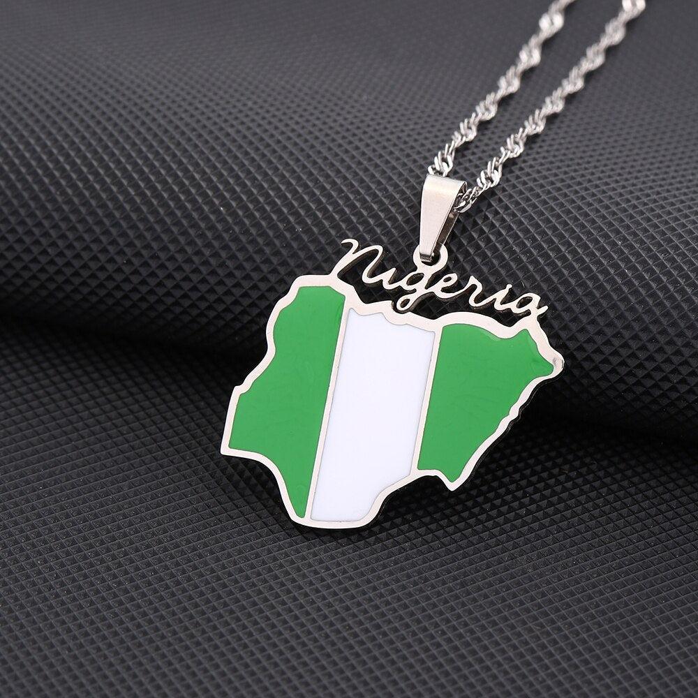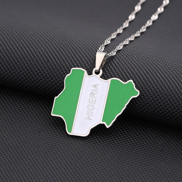 Celebrate your heritage with our Africa Nigeria Flag Map Necklace. Show your pride, support your country & wear your pendant with passion. Buy now!