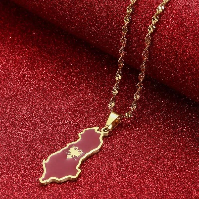 Celebrate your heritage with our Albania Flag Map Necklace. Show your pride, support your country & wear your pendant with passion. Buy now!