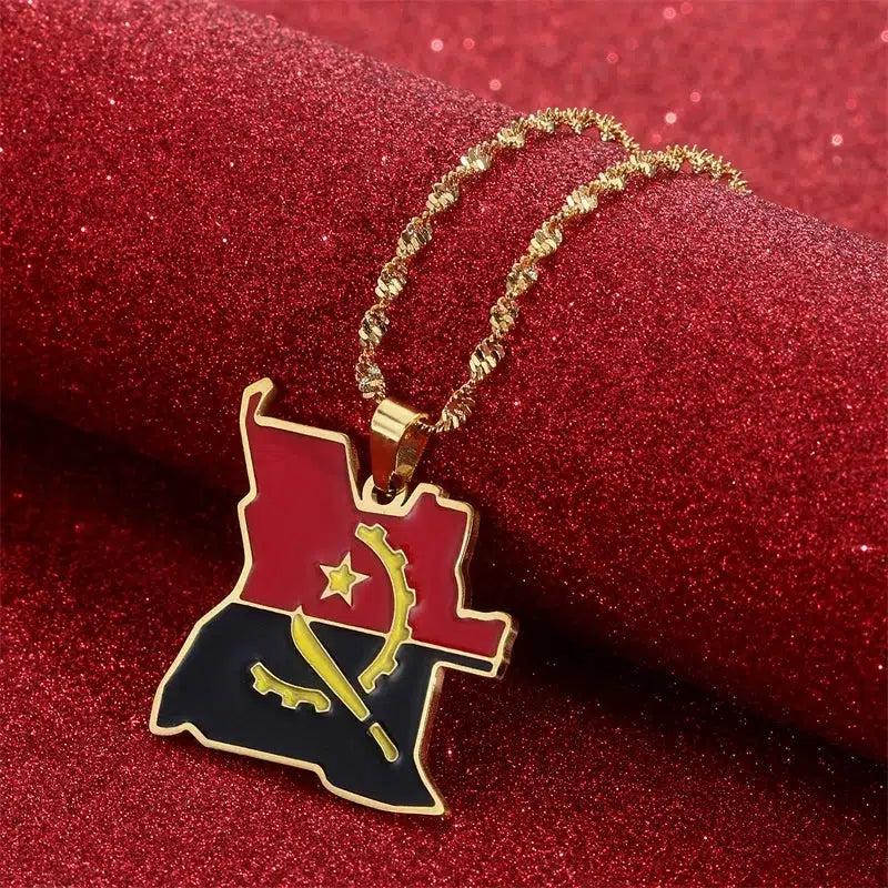 Elevate your heritage with our Angola Flag Map Necklace. Show your pride, support your country & wear your pendant with passion. Buy now!