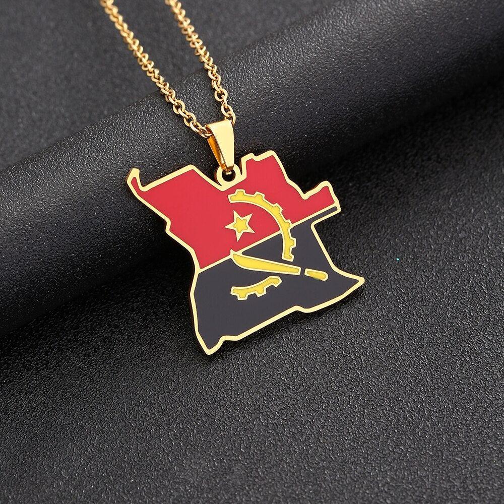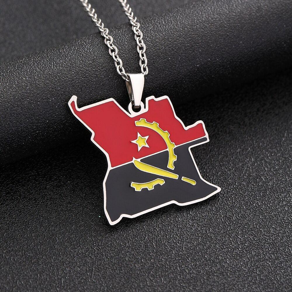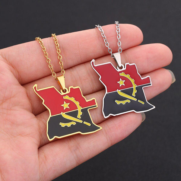 Elevate your heritage with our Angola Flag Map Necklace. Show your pride, support your country & wear your pendant with passion. Buy now!