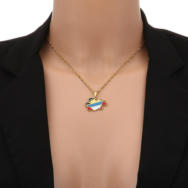 Antigua and Barbuda Flag Map Necklace. Show your pride, support your country & wear your pendant with passion. Buy now!