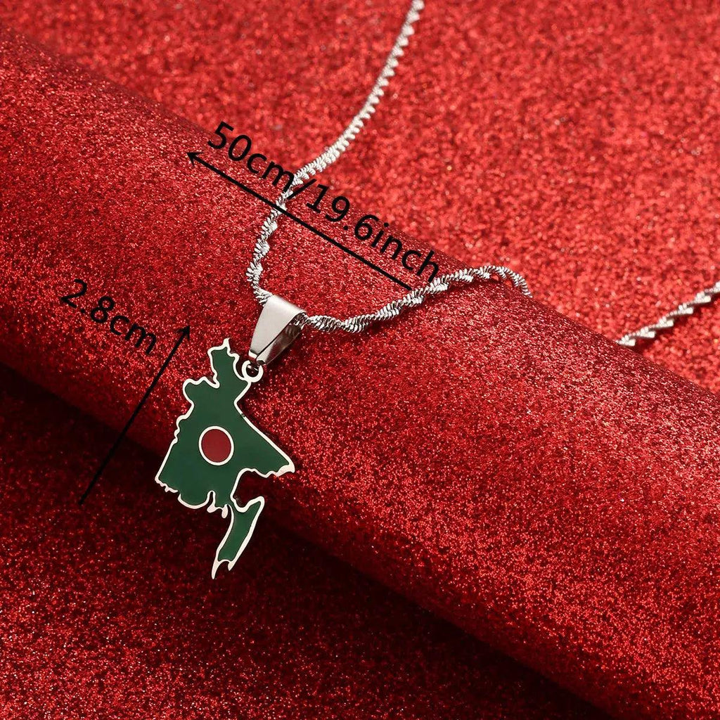 Elevate your heritage with our Bangladesh Flag Map Necklace. Show your pride, support your country & wear your pendant with passion. Buy now!