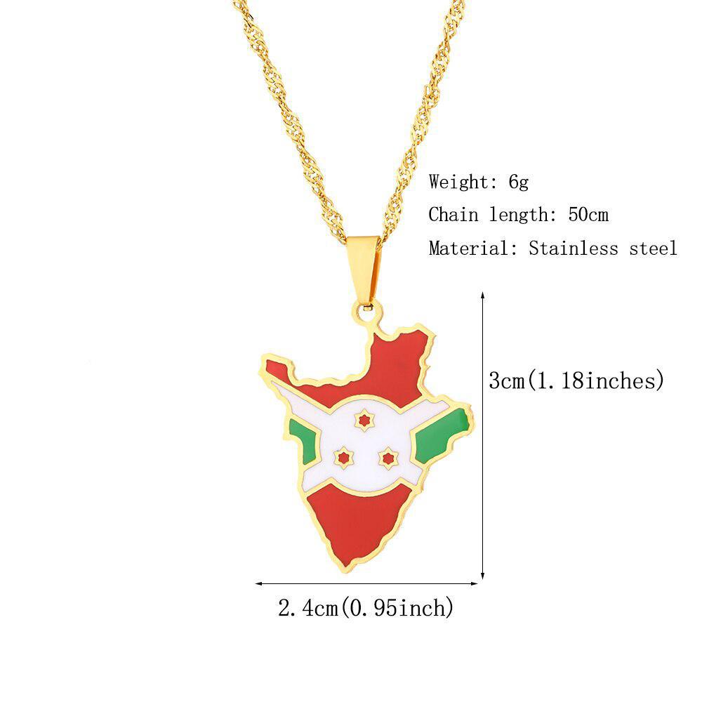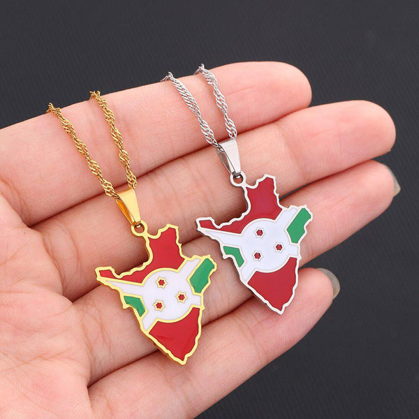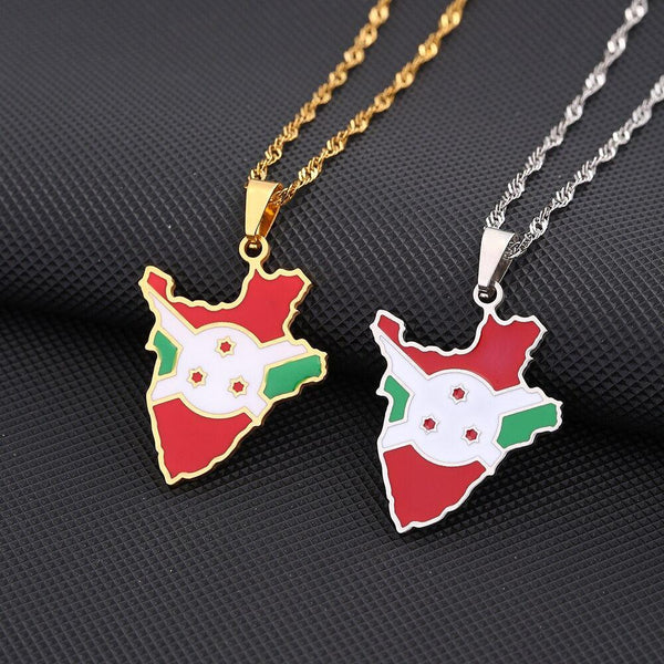 Elevate your heritage with our Burundi Flag Map Necklace. Show your pride, support your country & wear your pendant with passion. Buy now!
