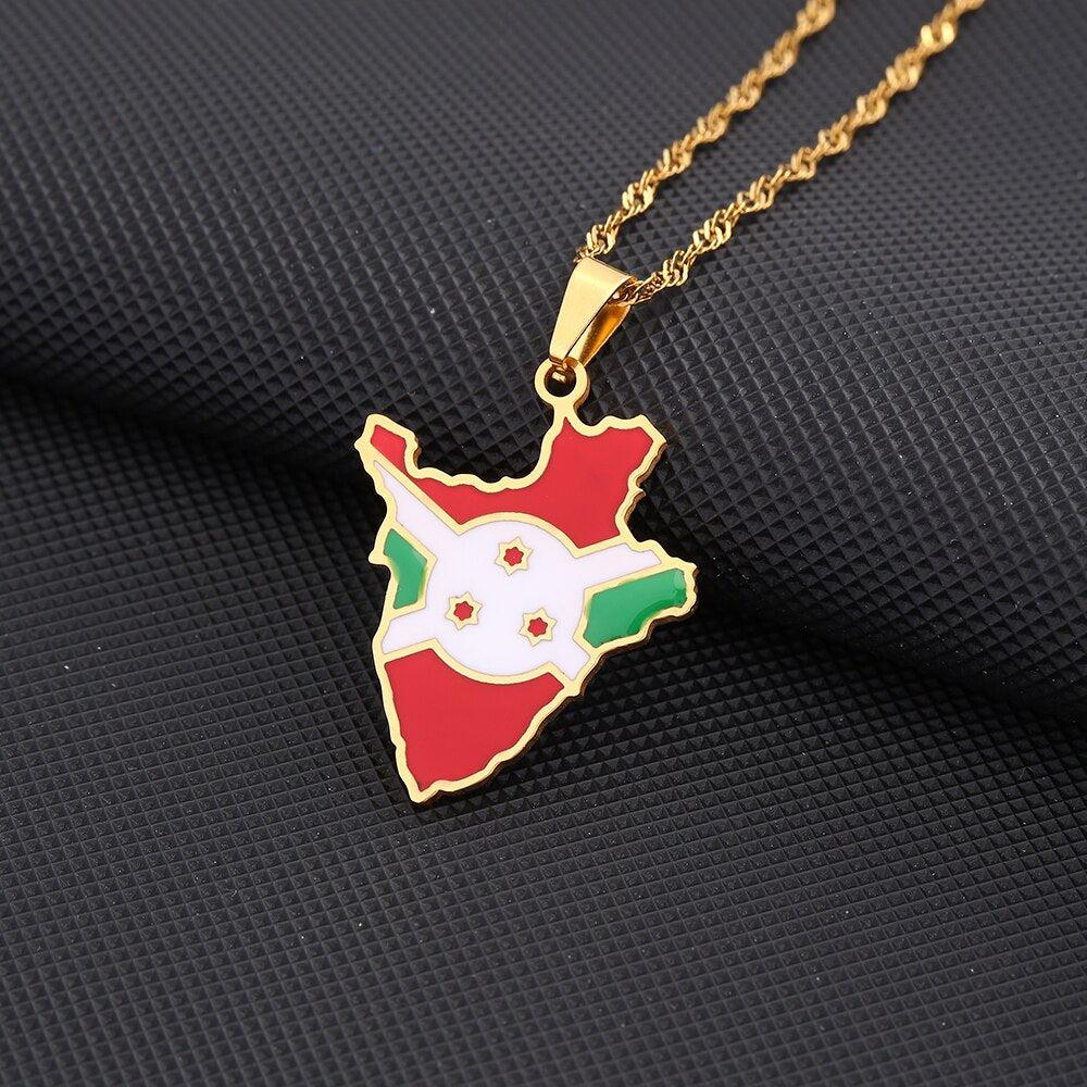 Burundi Flag Map Necklace