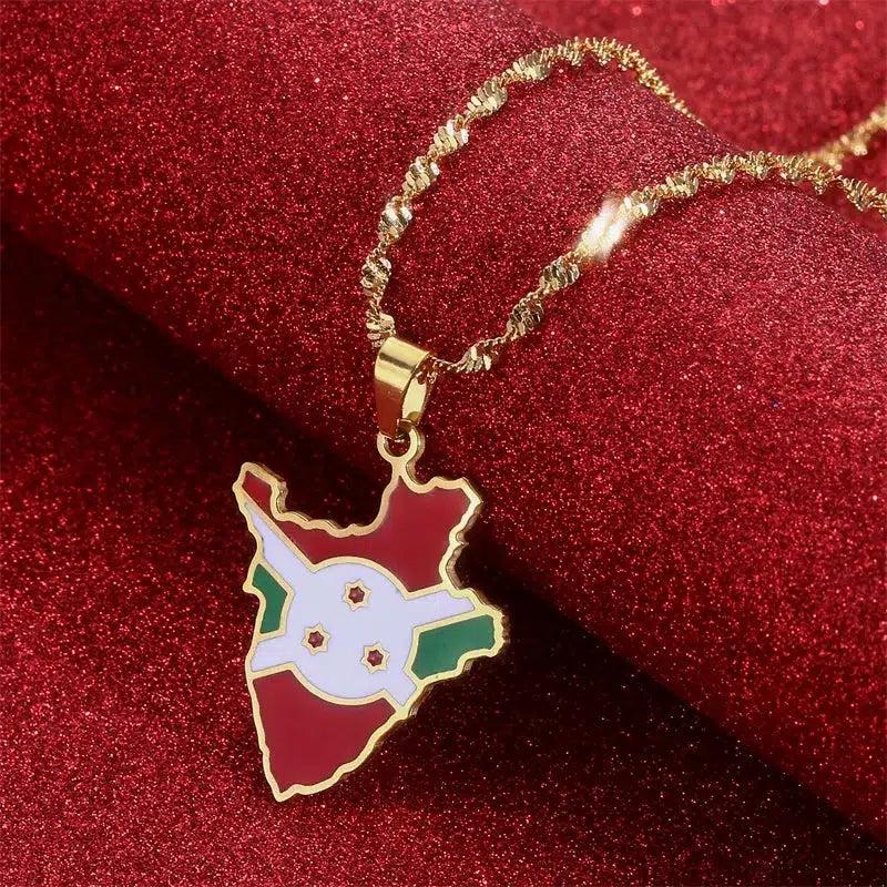 Elevate your heritage with our Burundi Flag Map Necklace. Show your pride, support your country & wear your pendant with passion. Buy now!