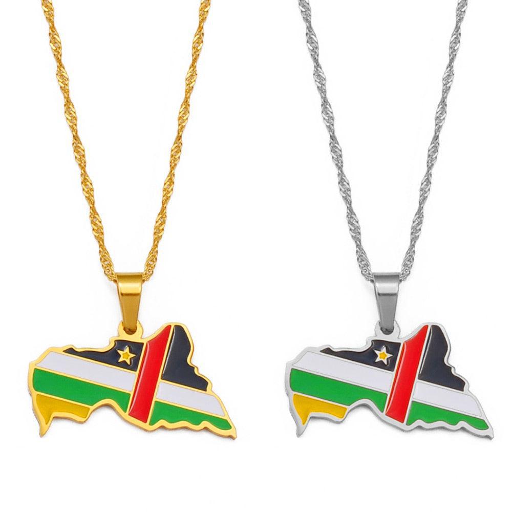 Celebrate your heritage with our Central African Republic Flag Map Necklace. Show your pride, support your country & wear your pendant with passion. Buy now!