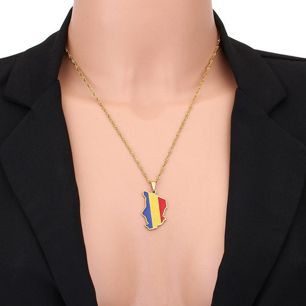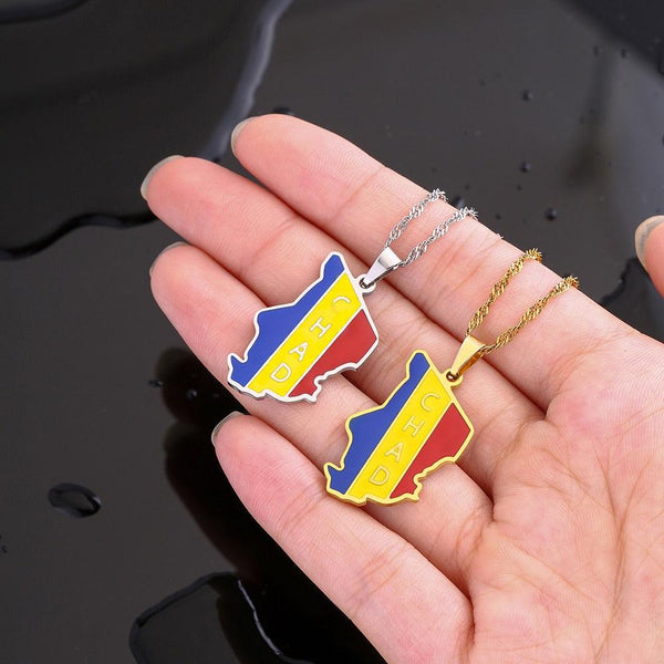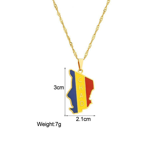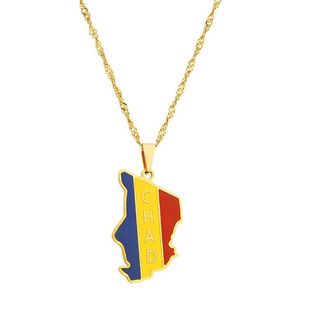 Celebrate your heritage with our Chad Flag Map Necklace. Show your pride, support your country & wear your pendant with passion. Buy now!