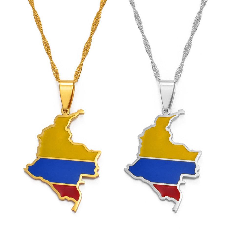 Celebrate your heritage with our Colombia Flag Map Necklace. Show your pride, support your country & wear your pendant with passion. Buy now!