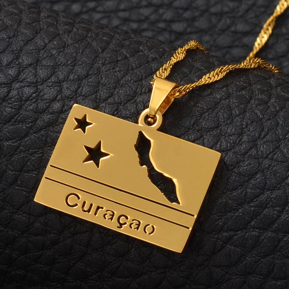 Celebrate your heritage with our Curacao Flag Map Necklace. Show your pride, support your country & wear your pendant with passion. Buy now!