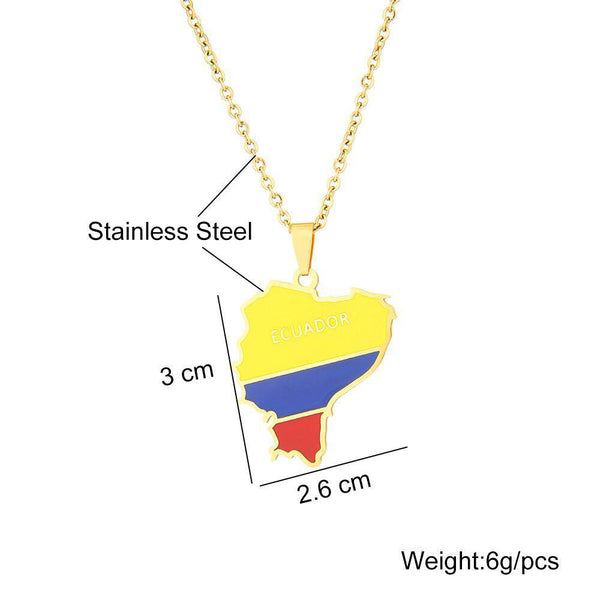 Elevate your heritage with our Ecuador Flag Map Necklace. Show your pride, support your country & wear your pendant with passion. Buy now!