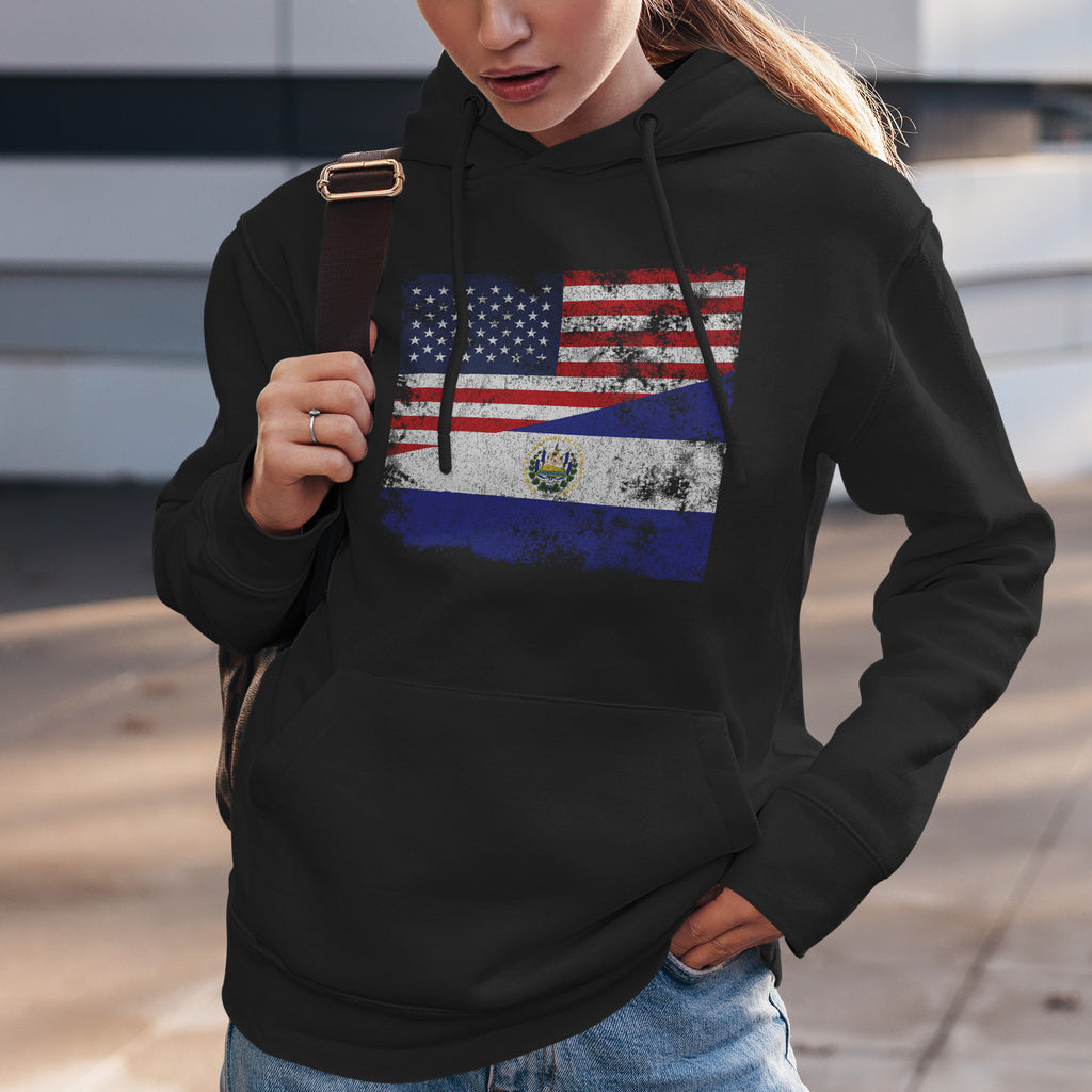 Celebrate your heritage with our Distressed El Salvador USA Flag Hoodie. Show your pride, support your country & wear your colors with passion. Buy now!