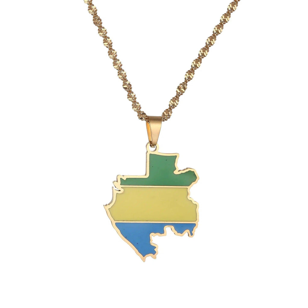 Elevate your heritage with our Gabon Flag Map Necklace. Show your pride, support your country & wear your pendant with passion. Buy now!