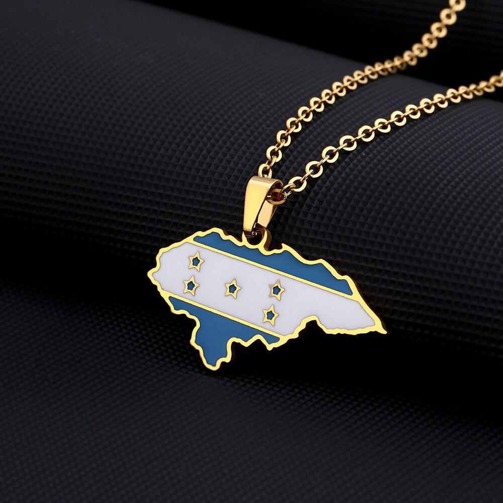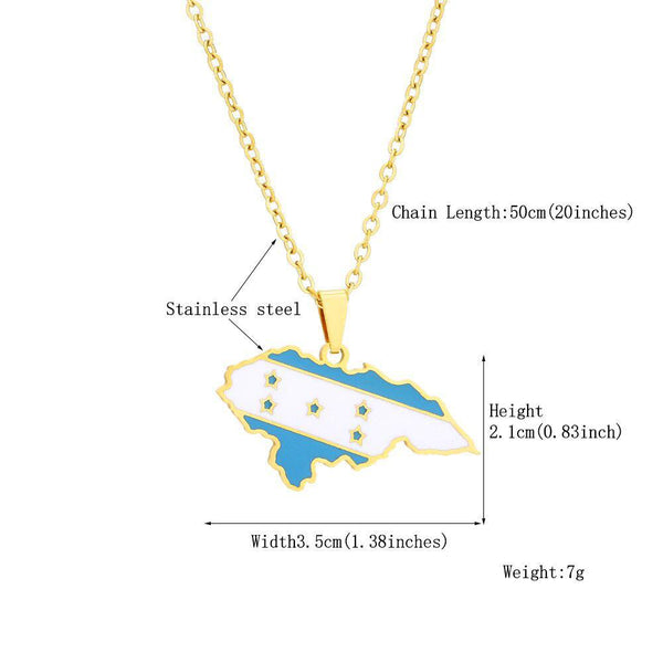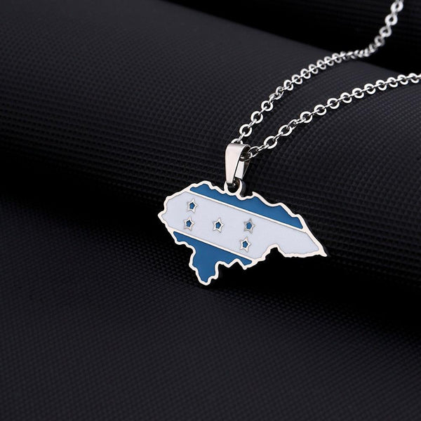 Elevate your heritage with our Honduras Flag Map Necklace. Show your pride, support your country & wear your pendant with passion. Buy now!